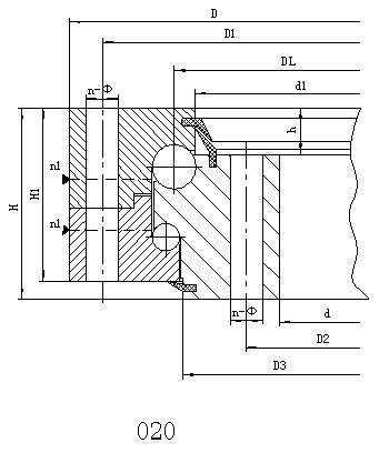 雙排球式回轉(zhuǎn)支承具有三個座圈,鋼球和隔離塊可直接排入上下滾道,根據(jù)受力狀況,安排了上下兩排直徑不同的鋼球。這種開式裝配非常方便,上下圓弧滾道的承載角都為90°,能承受很大的軸向力和傾翻力矩。當(dāng)徑向力大于0.1倍的軸向力時滾道須特殊設(shè)計。雙排球式回轉(zhuǎn)支承的軸向、徑向尺寸都比較大,結(jié)構(gòu)緊固。特別適用于要求中等以上直徑的塔式起重機,汽車起重機等裝卸機械上。