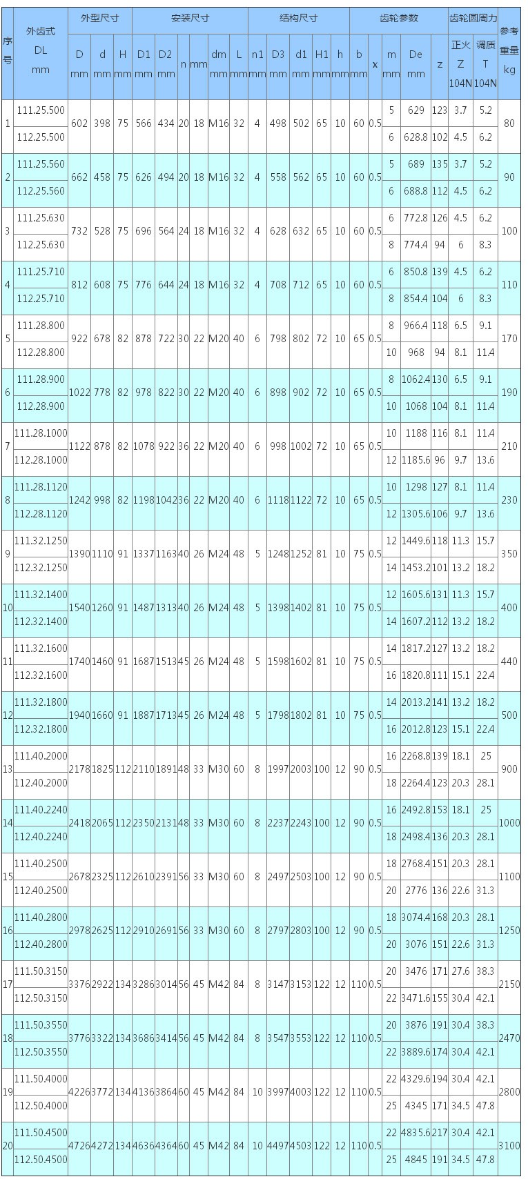 3、表內齒輪圓周力為最大圓周力,額定圓周力取其1/2。